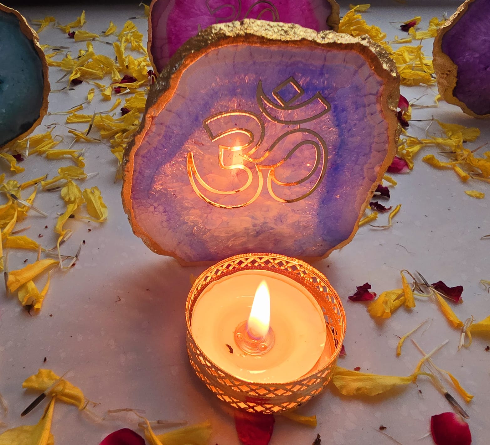 We are thrilled that our Agate Om Tealight has brought a touch of elegance and spirituality to your homes and festivities.