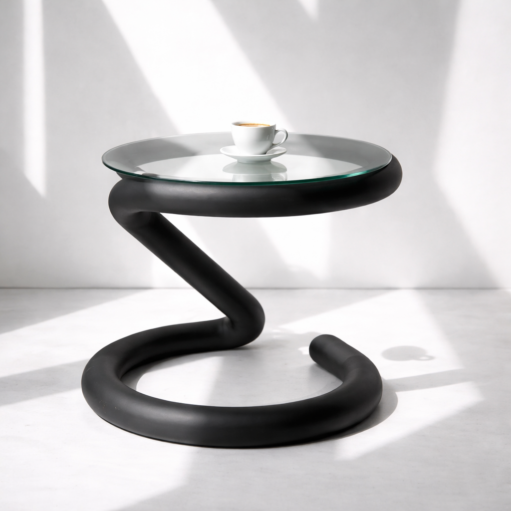 A modern sculptural side table featuring a bold, flowing silhouette with a smooth matte finish. Designed as a functional art piece, it adds a striking contemporary accent to living rooms, lounges, or designer interiors.
