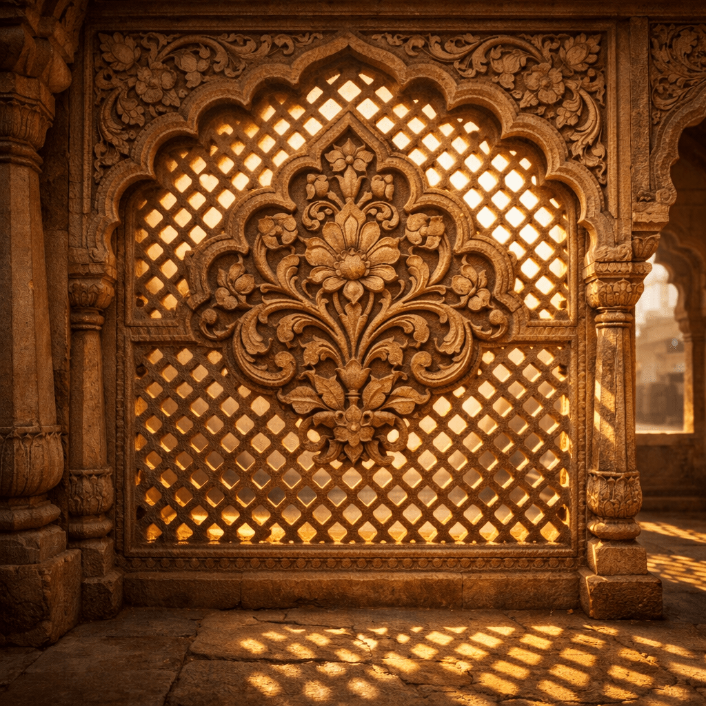 The Heritage Bloom Sandstone Jali is a finely crafted stone partition inspired by classic Mughal floral motifs. Made from natural sandstone, it features an elegant lattice design that allows soft sunlight to filter through, creating a warm and artistic play of light and shadow. Ideal for temples, heritage spaces, luxury residences, or statement interiors, this jali reflects timeless Indian aesthetics with enduring strength and architectural elegance.