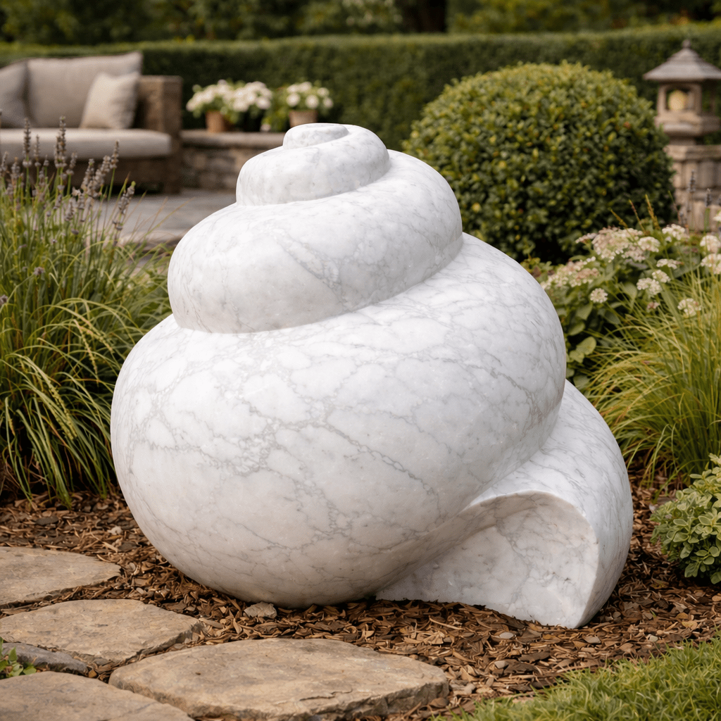 A stunning hand-carved marble spiral sculpture designed to elevate outdoor landscapes with timeless elegance. Featuring smooth curves and natural stone veining, this statement piece adds a luxurious and artistic focal point to gardens, lawns, patios, or luxury farmhouse settings. Durable and weather-resistant, it blends beautifully with greenery and modern outdoor décor.