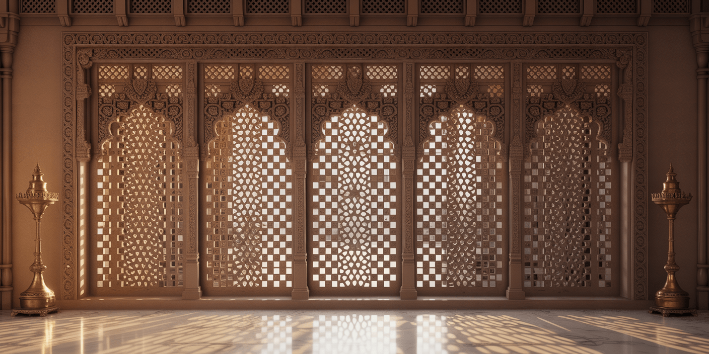Elevate your interiors with the timeless charm of the Regal Noorwood Jali Panel, a masterpiece crafted to bring heritage artistry into modern luxury spaces. Inspired by traditional palace architecture, this partition features intricately carved arch motifs, symmetrical lattice patterns, and refined detailing that create an enchanting play of light and shadow throughout the day.
